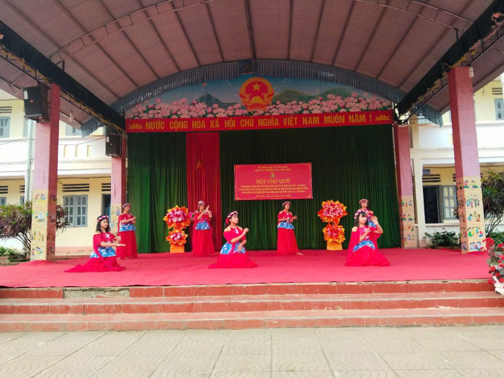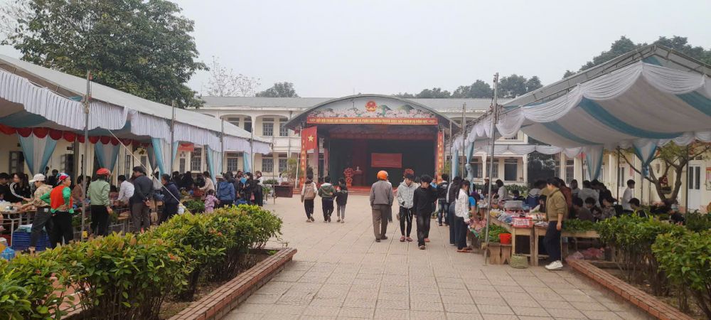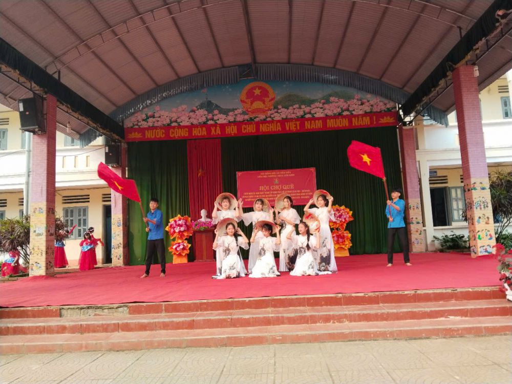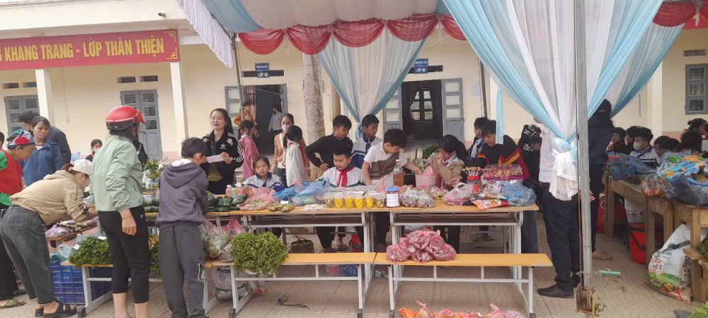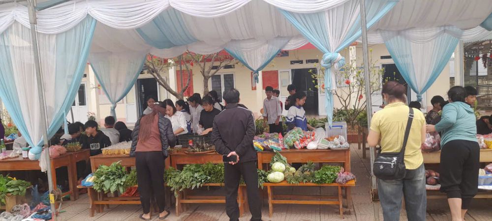Không khí chuẩn bị và đón đợi ngày Hội chợ quê đã được rậm rịch một tuần nay. Cô trò nhà trường cùng với phụ huynh học sinh sau mỗi giờ lên lớp lại tập trung vào công việc trang trí sân khấu, dựng các gian hàng, tập văn nghệ …Đây không phải là lần đầu tiên Hội chợ quê được tổ chức nhưng sự háo hức vẫn hiện rõ trên gương mặt của cả thầy lẫn trò. Mới 7 giờ sáng, cổng trường đã đông nghịt người, phụ huynh đưa con đến, khách mời tham dự, các em học sinh lúng liếng trong những bộ quần áo tứ thân, áo yếm nhiều màu sắc. Sân trường rợp cờ hoa, rộn rã tiếng cười với các chương trình văn nghệ do chính các em học sinh và các anh chị đoàn viên biểu diễn. Điều đặc biệt là các tiết mục, các chương trình trong hội chợ vừa mang đậm chất dân dã, thôn quê, giàu bản sắc dân tộc vừa mang màu sắc của Ngày hội Thanh niên.